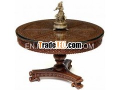 Wooden Carved Round Pedestal Coffee Table (Carved furniture from India)